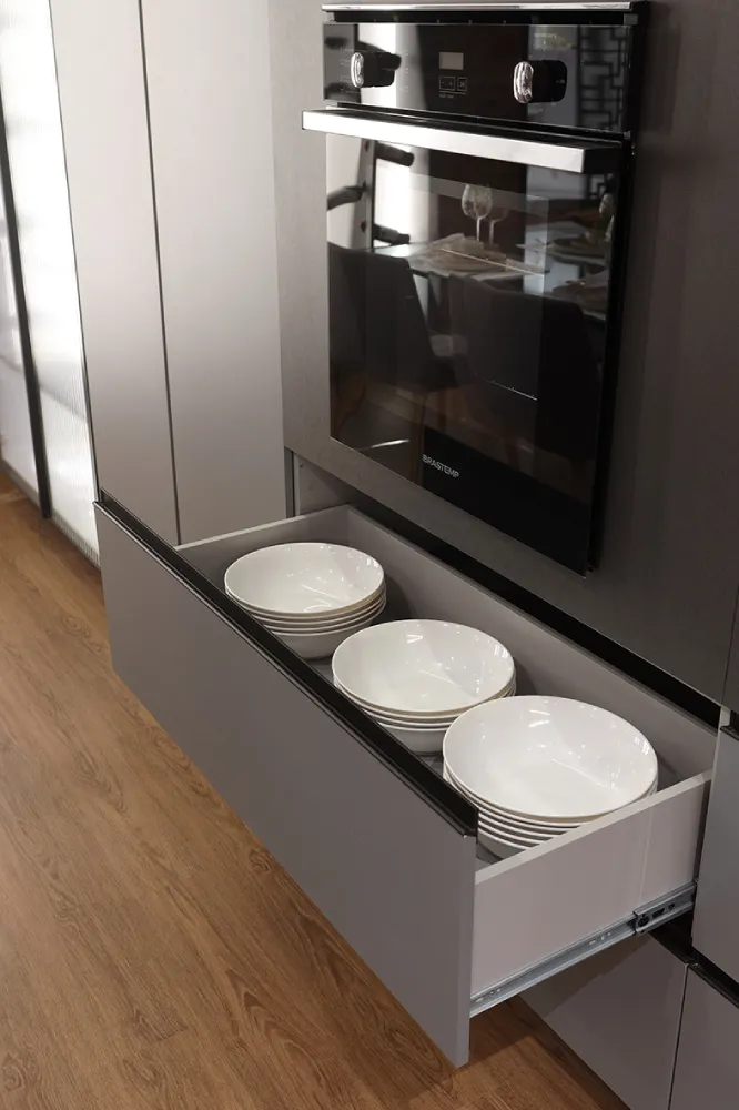Considere prateleiras deslizantes ou gavetas internas para facilitar o acesso a utensílios e mantimentos.