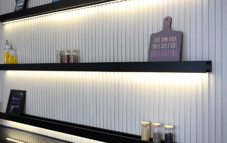 Em uma sala de estar, por exemplo, um canto pode ser utilizado para exibir livros ou objetos decorativos, enquanto na cozinha, prateleiras podem armazenar temperos e utensílios.